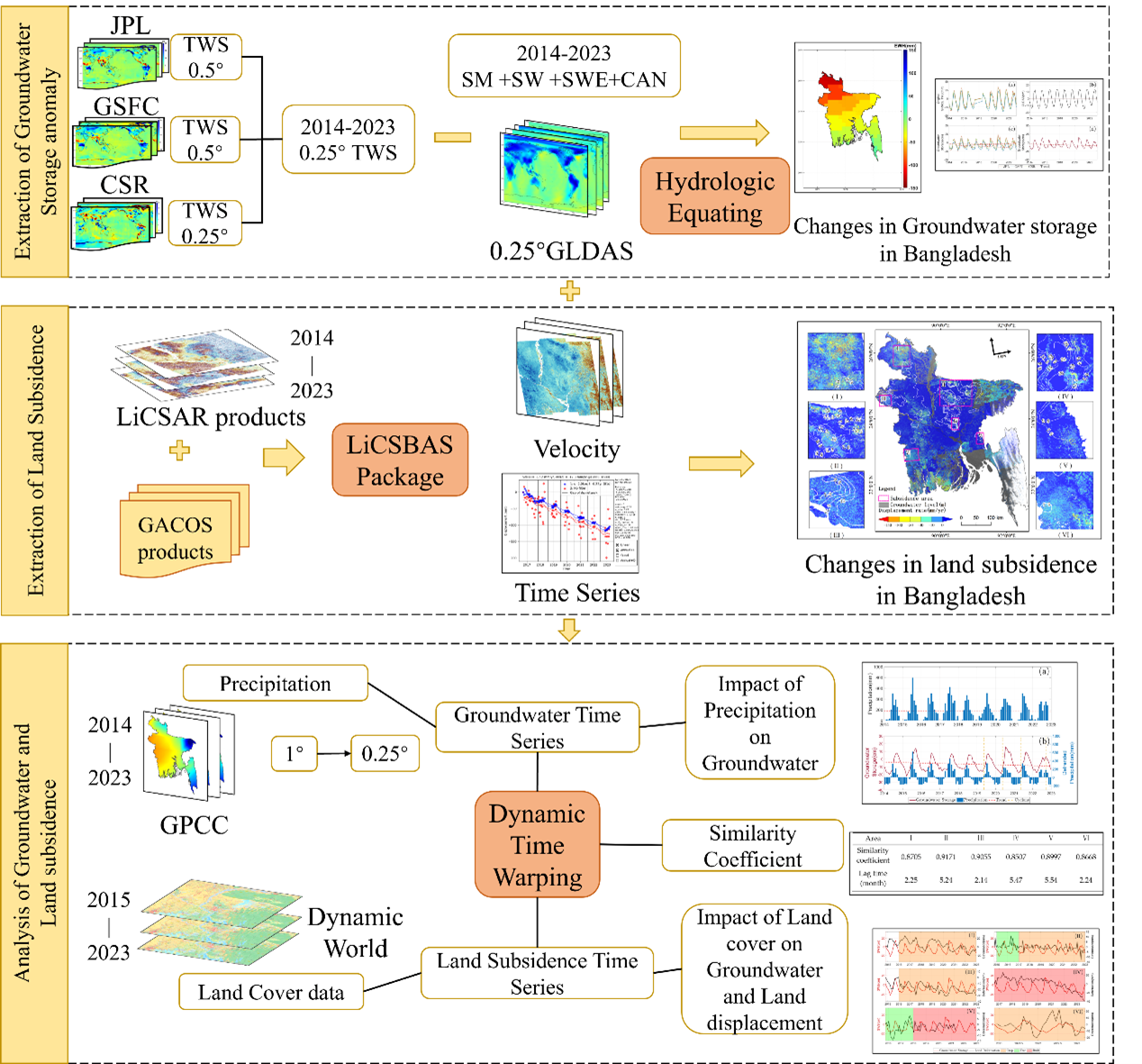 重要发现:孟加拉国地下水储量与地面沉降在长时序上的变化具有较强相似性,并且地面沉降对地下水储量变化的响应具有滞后性。
